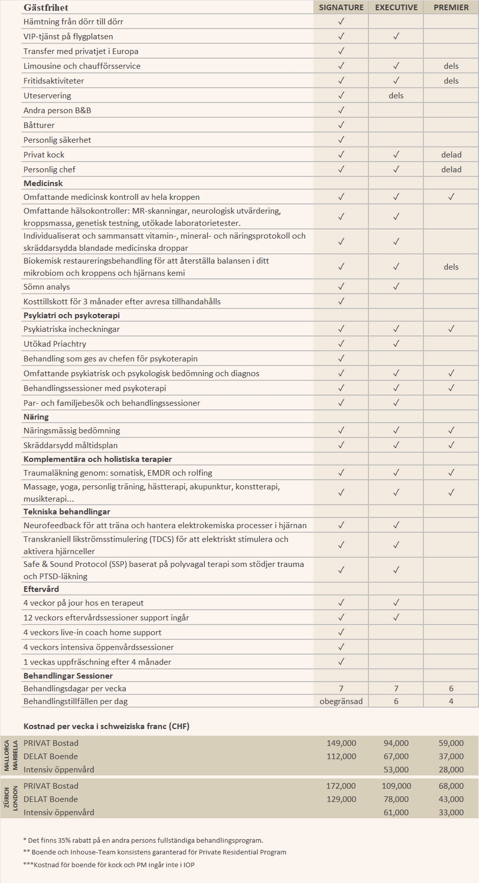 Vi är stolta över våra unika behandlingsprogram, skräddarsydda för att tillgodose varje individs unika behov.